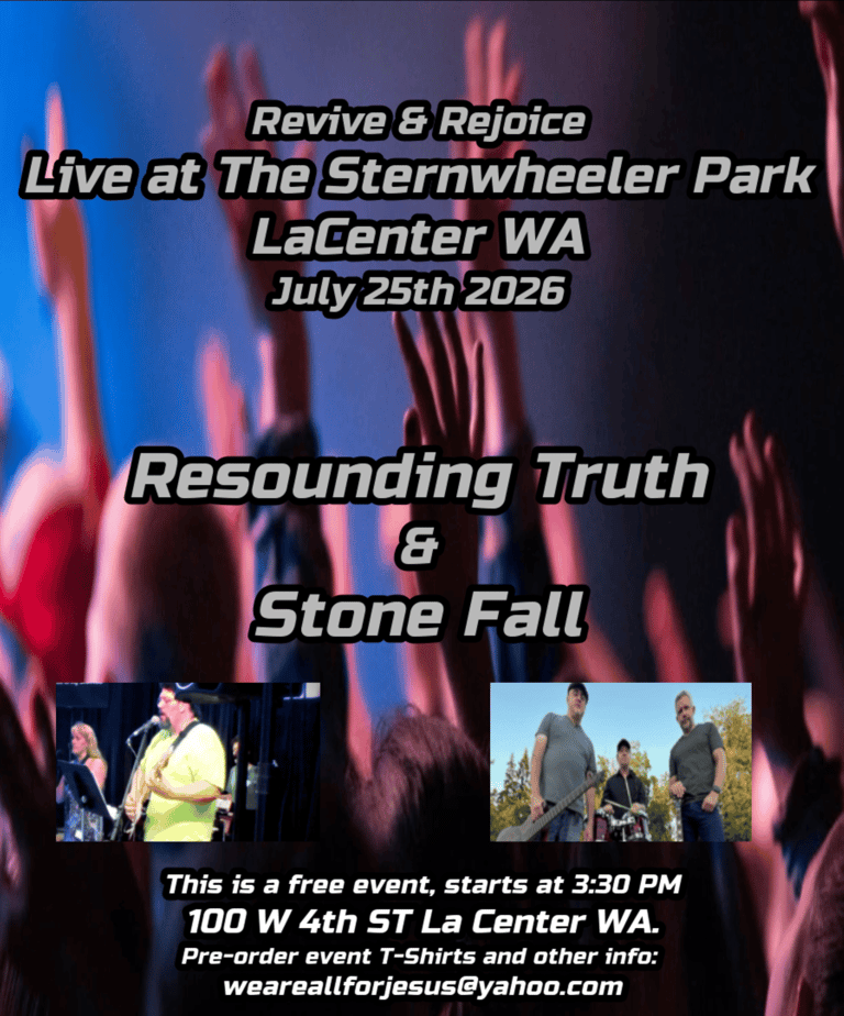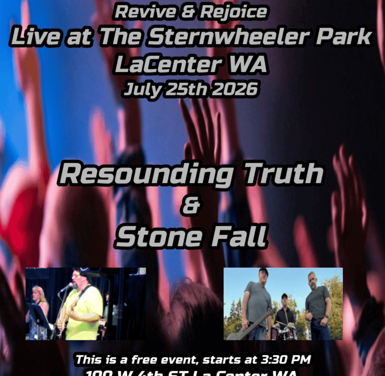 -July 25, 2026 3:30pm: Revive & Rejoice at the Sternwheeler Park (with Resounding Truth) 100 W. 4th St, La Center, WA